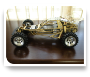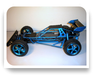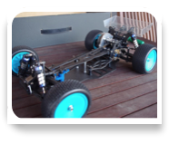 This is a mix of three RC cars made of an Optima mid custom chassis, a Lazer ZXR suspension and steering, and a wider than usual trimmed regular Optima Mid body, a nice looking runner!